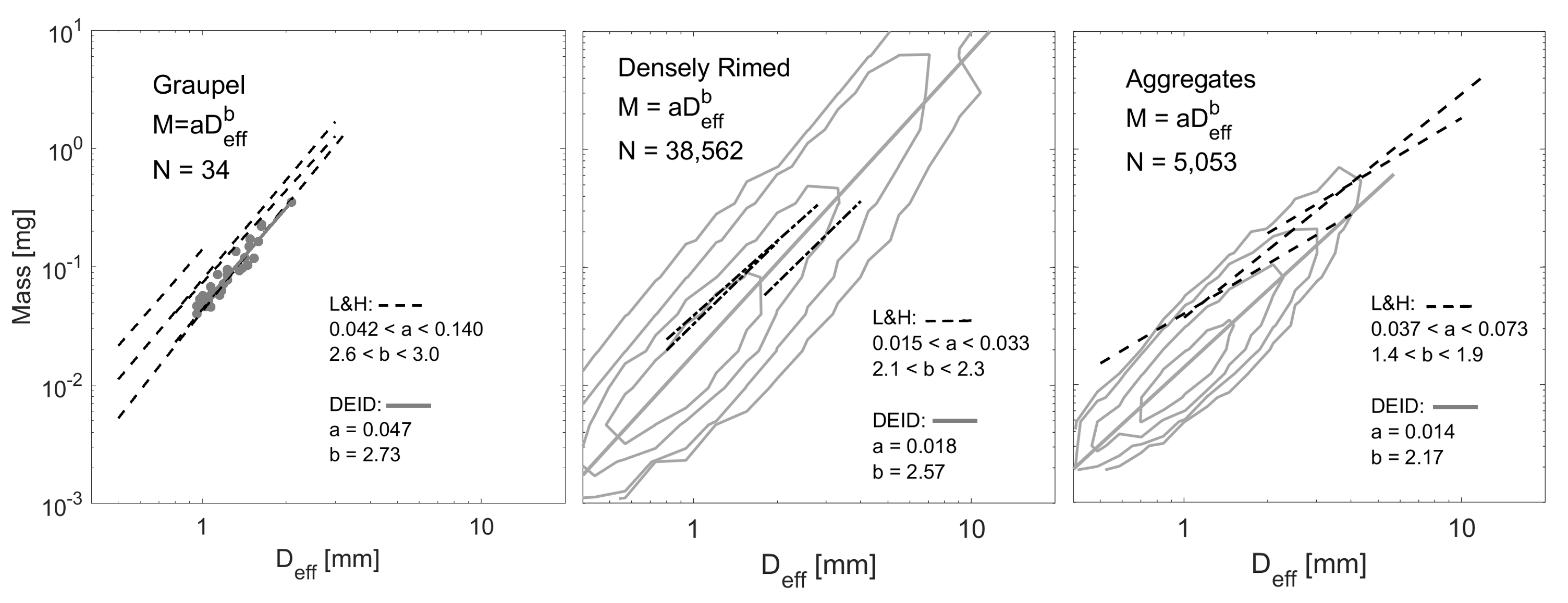 simulateneous measurements of hydrometeor mass and cumulative precipitation amount, with